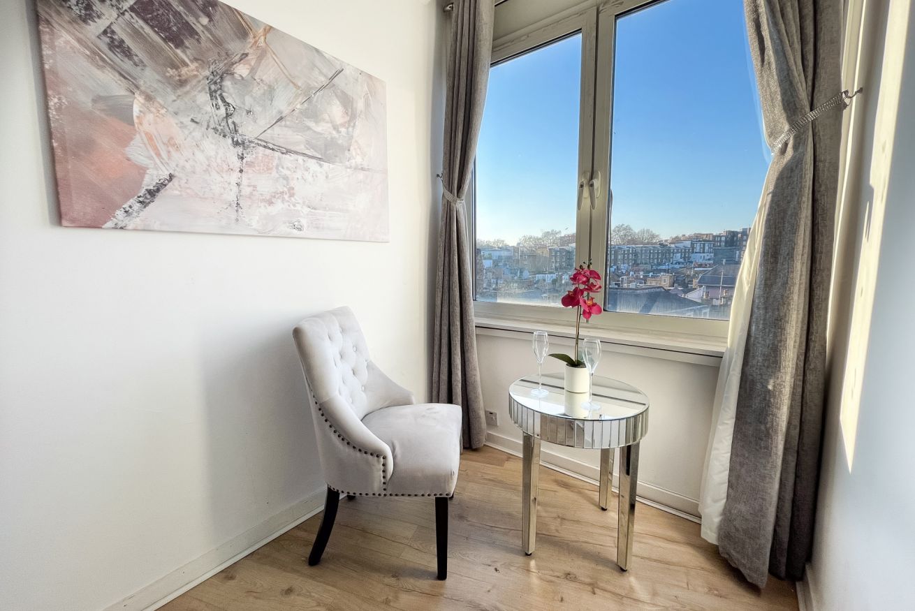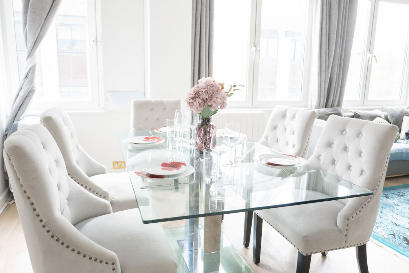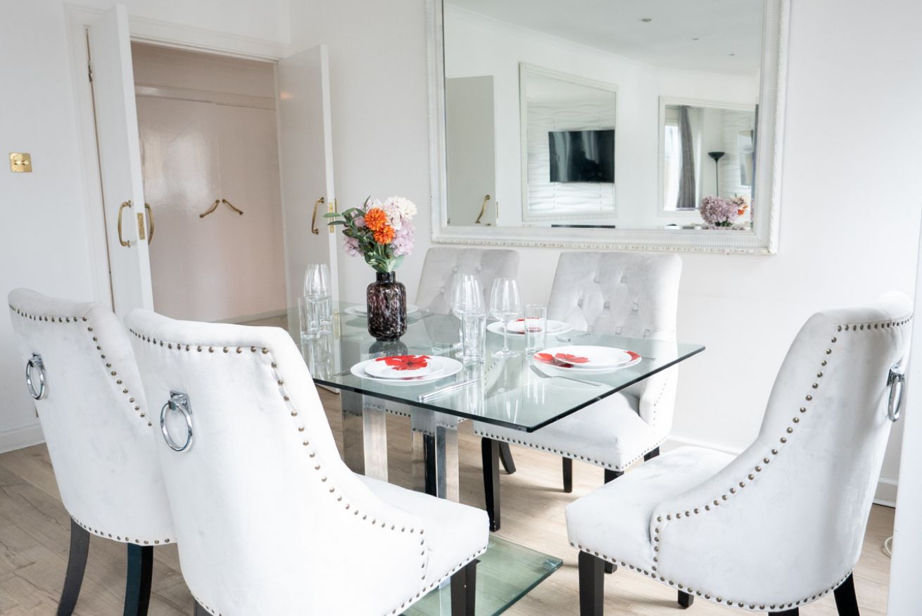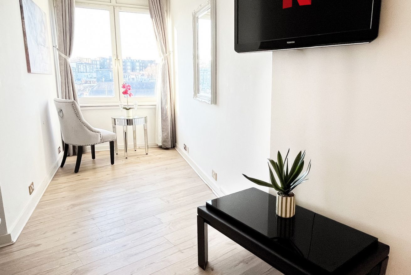 Il cuore della casa è la luminosa zona giorno con cucina, uno spazio conviviale e raffinato pensato per rilassarsi dopo una giornata a Londra, condividere momenti insieme e godere di una piacevole vista su Old Brompton Road. La luce naturale valorizza gli ambienti e dona all’intera casa un’atmosfera ariosa, elegante e contemporanea.