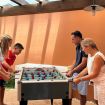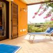 La cucina, completa di forno, microonde e fornelli a gas, è perfetta per preparare piatti da gustare nella luminosa zona living o all’aperto, sotto le terrazze ombreggiate. L’accogliente area giorno include anche due letti singoli supplementari, ideali per famiglie o gruppi di amici.