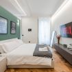 Le due camere da letto matrimoniali sono arredate con grande cura per garantire il massimo del comfort. La camera più piccola, che si affaccia sulla strada principale, è dotata di uno specchio, una smart TV e un armadio spazioso. La camera più grande offre un'esperienza di lusso con uno specchio a figura intera, un ampio armadio capiente e una smart TV, ideale per rilassarsi dopo una giornata intensa.