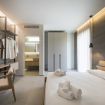 La zona giorno, luminosa e moderna, si apre su una veranda esterna privata con tavolo da pranzo, perfetta per gustare un pasto con vista mare. Tutti gli ambienti sono dotati di aria condizionata, wi-fi gratuito, smart TV (55’’ in soggiorno, 45’’ nella camera) e rifiniture di pregio.