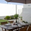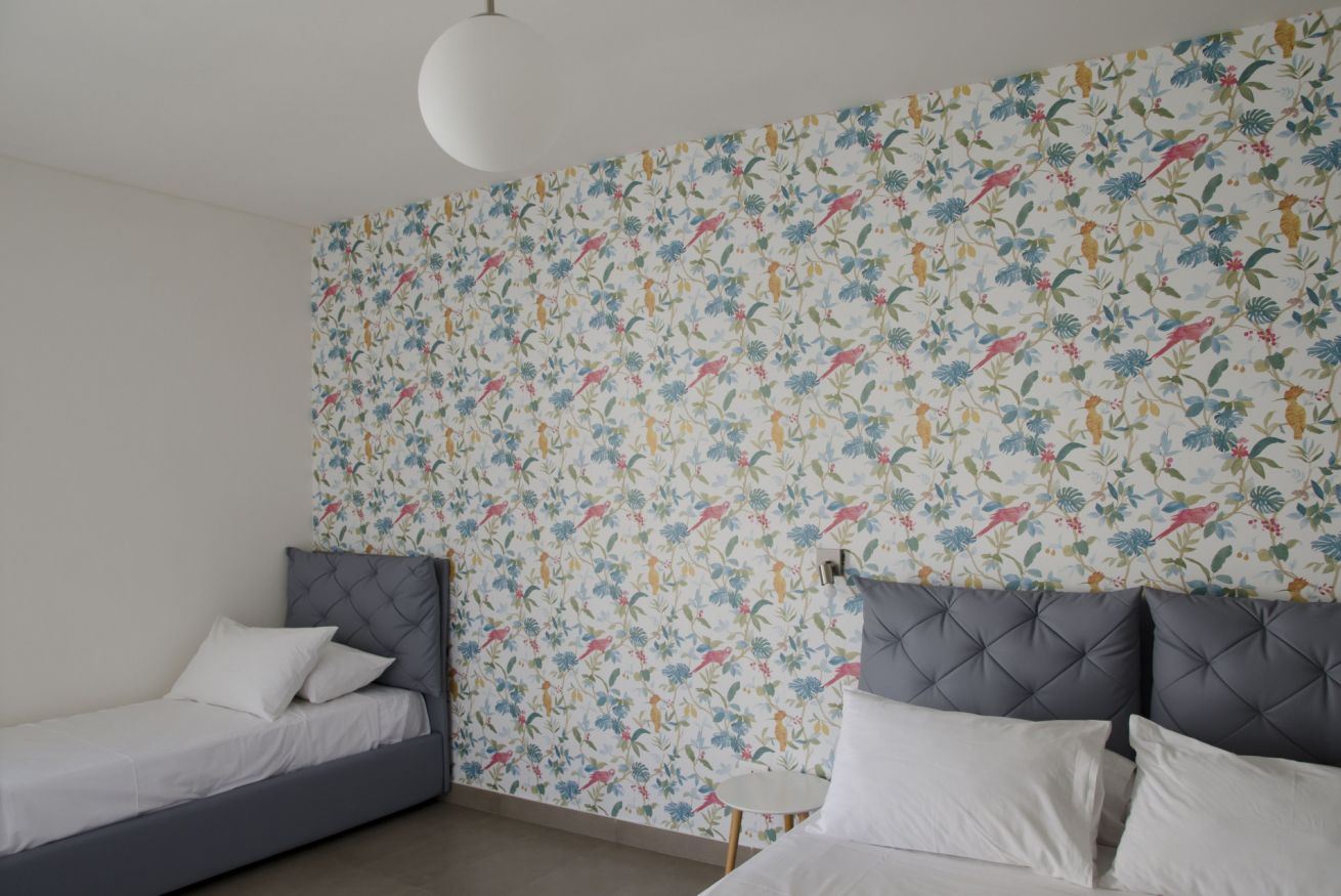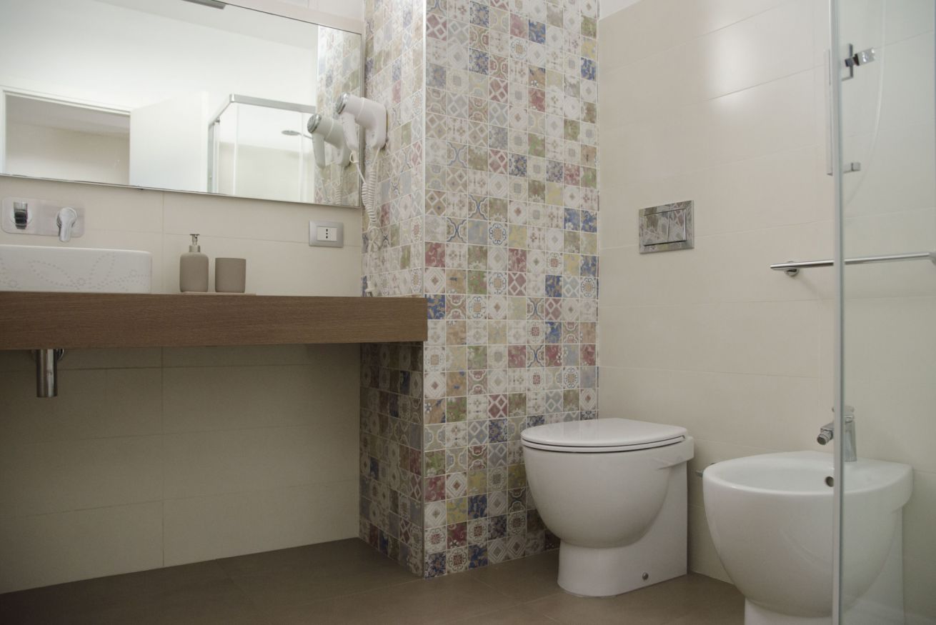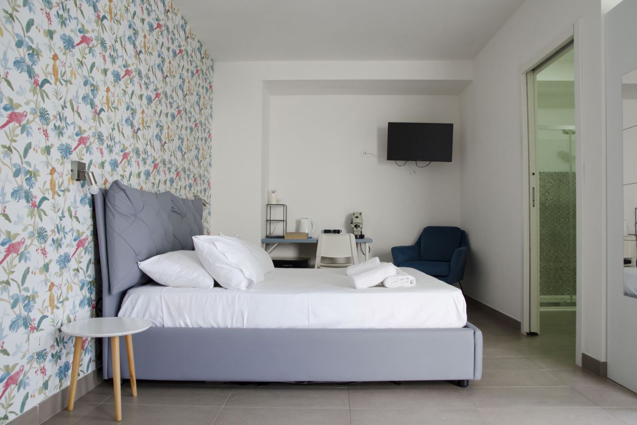 Dalla veranda si accede alla seconda camera matrimoniale indipendente, anch’essa dotata di letto matrimoniale, letto singolo, bagno completo in camera e un piccolo patio privato con tavolino per la colazione.