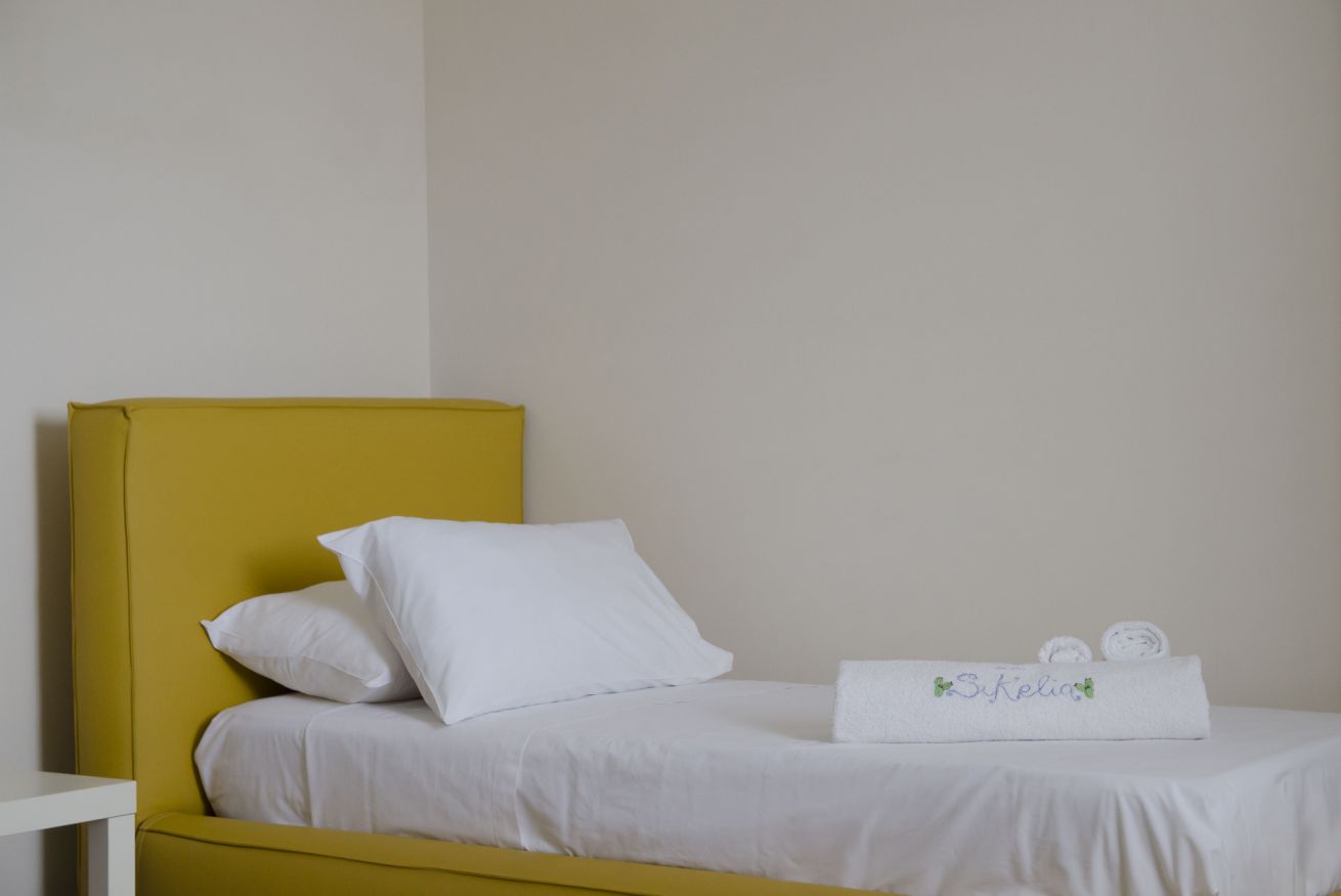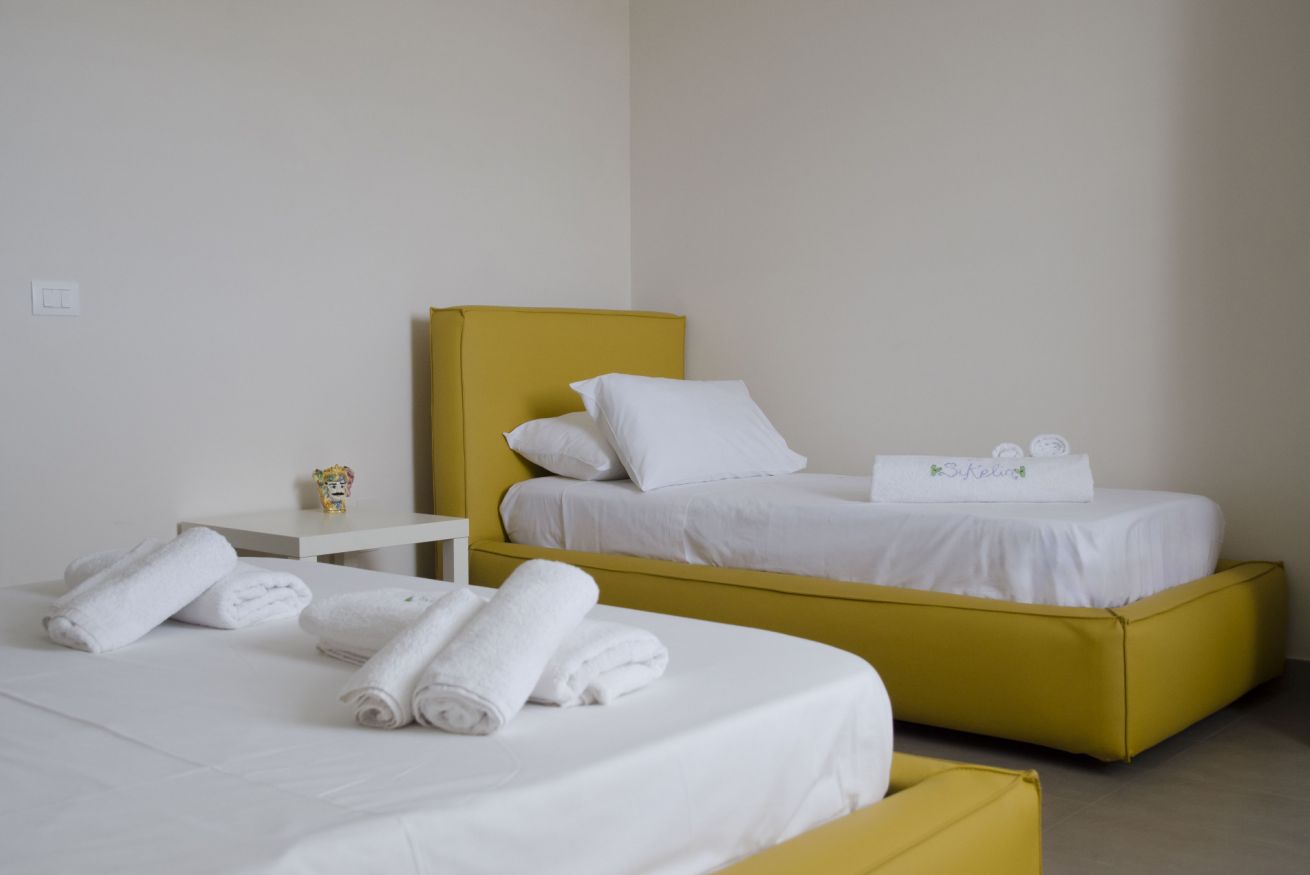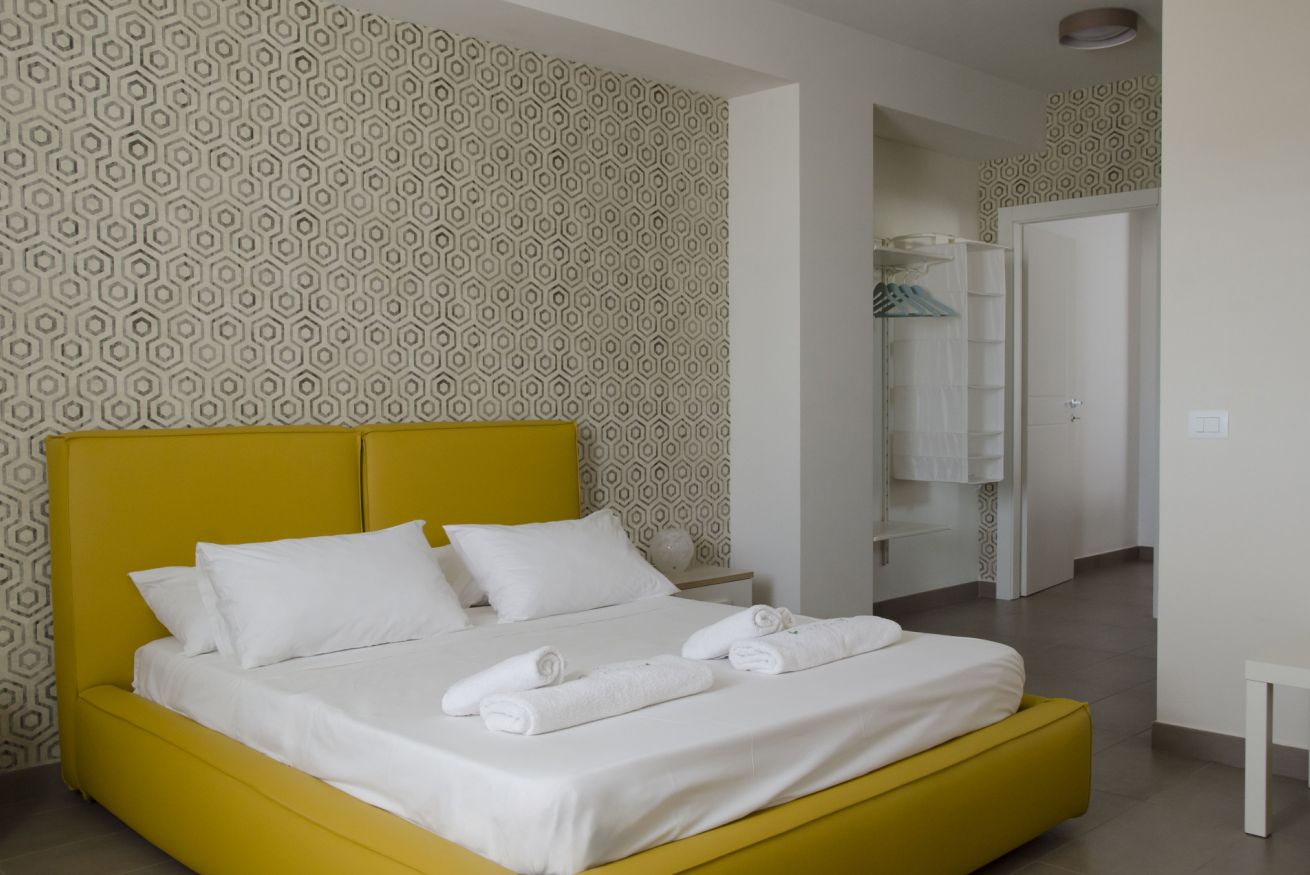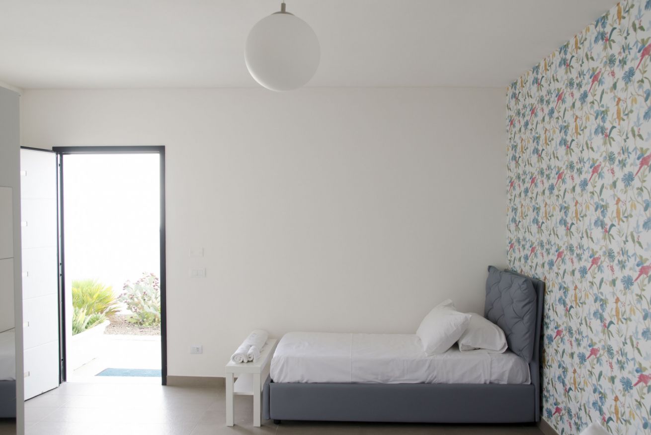 Al piano superiore si trova la terza camera da letto indipendente, con letto matrimoniale, cabina armadio, bagno privato e un ampio balcone dove respirare l’aria e la luce della Sicilia.